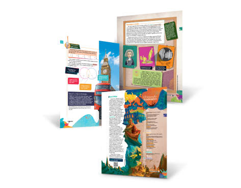Materiais didáticos de Língua Portuguesa e Língua Inglesa para Educação Infantil, Ensino Fundamental, Ensino Médio e projetos bilíngues, coleções de editoras diversas.